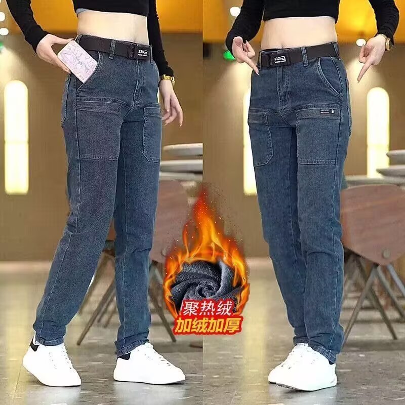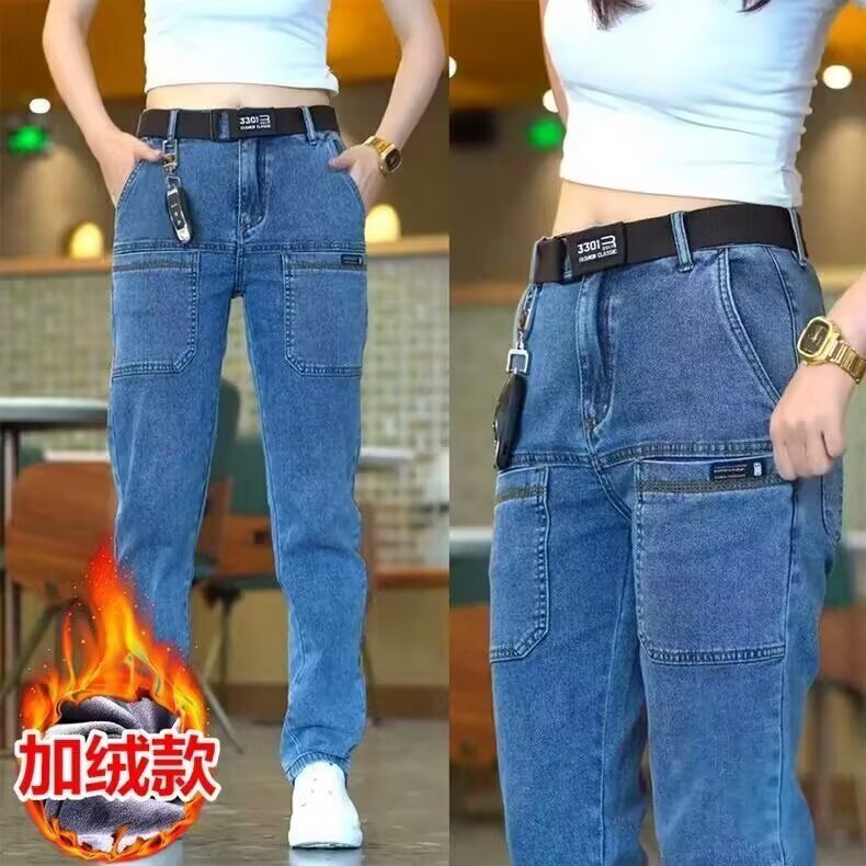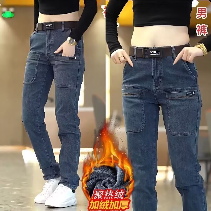 宽松直筒休闲百搭时尚 加绒多口袋水洗个性 男女2025秋冬季 牛仔裤