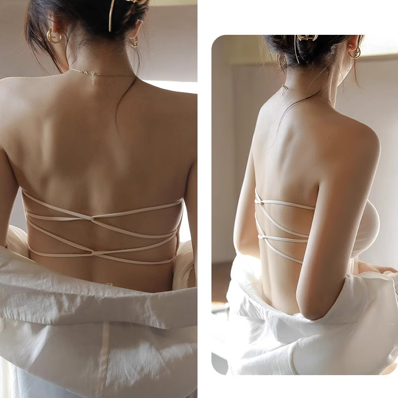 细肩带美背内衣女小胸聚拢隐形无痕抹胸内搭吊带裙专用一体式 文胸