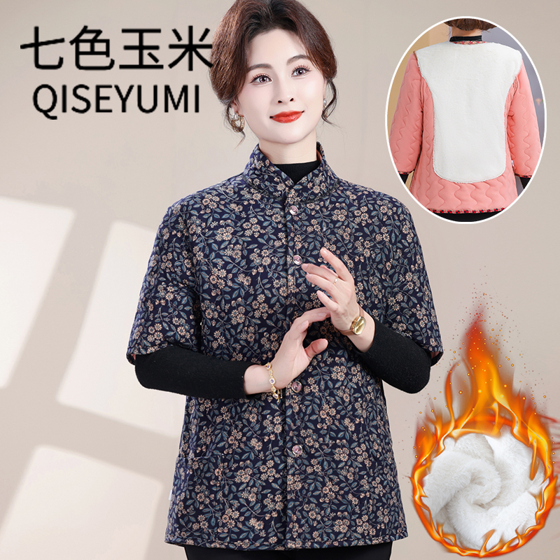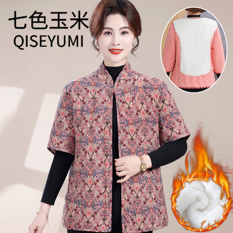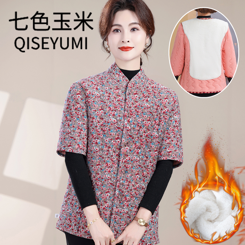 半袖 七色玉米奶奶装 保暖中老年女装 加绒加厚马甲女中袖 棉衣服 冬季