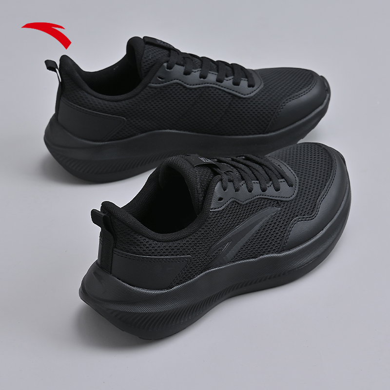 轻便运动鞋 安踏轻质皮面男鞋 革面黑色软底减震防滑跑步鞋 秋季 跑鞋