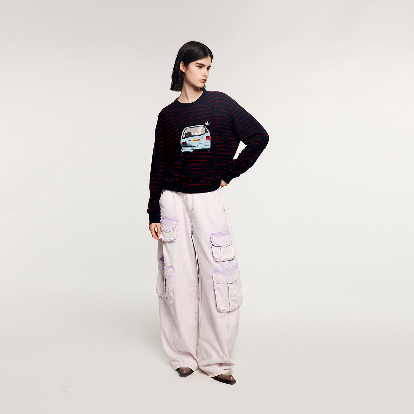 「奇幻都市」旅行小狗条纹套头毛衫 新款 乌丫2025冬季 UOOYAA