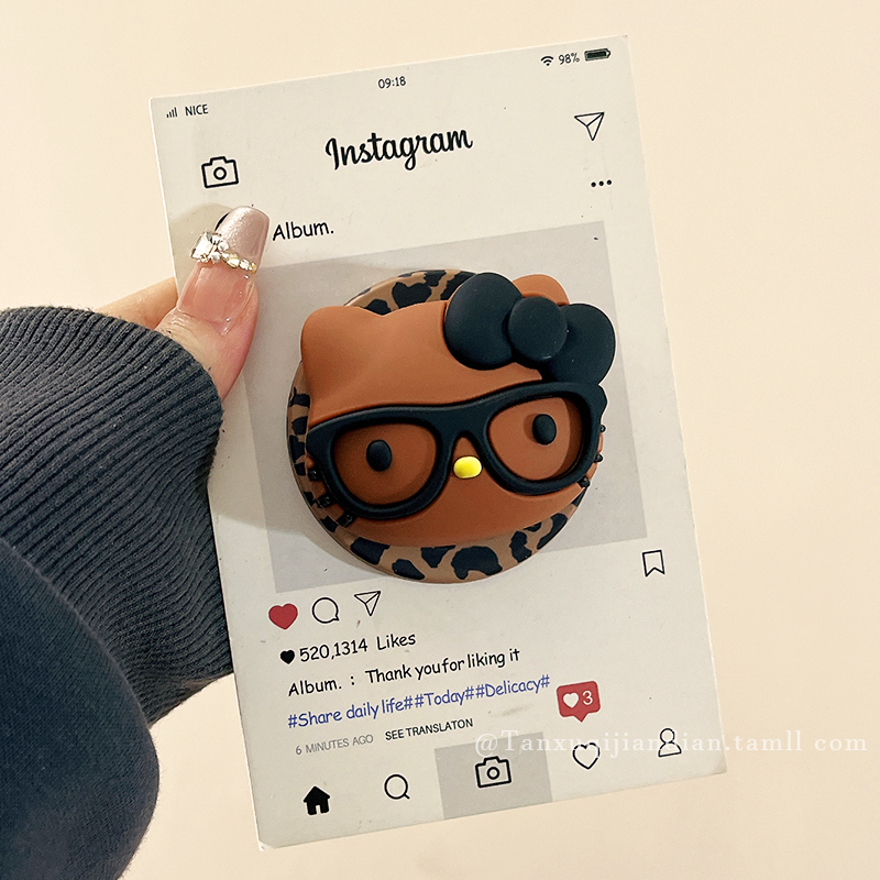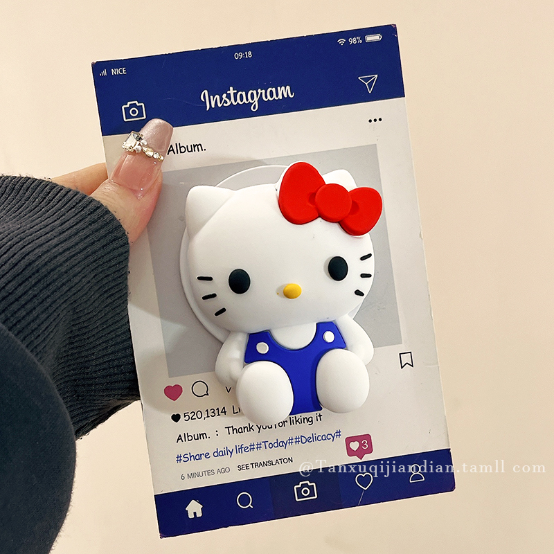 可爱卡通立体黑皮HelloKitty适用Magsafe苹果华为磁吸支架手机背贴气囊可伸缩折叠便携桌面固定强力吸附女款
