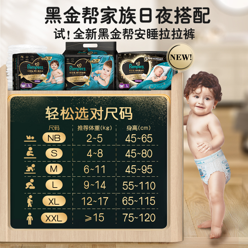 添加真蚕丝L 帮宝适黑金帮拉拉裤 4XL 李佳琦直播间现货美妆节