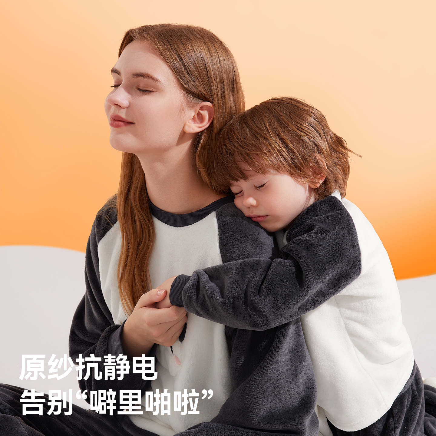 法兰绒保暖加厚衣服 亲子装 贝肽斯儿童睡衣秋冬家居服套装 2025新款