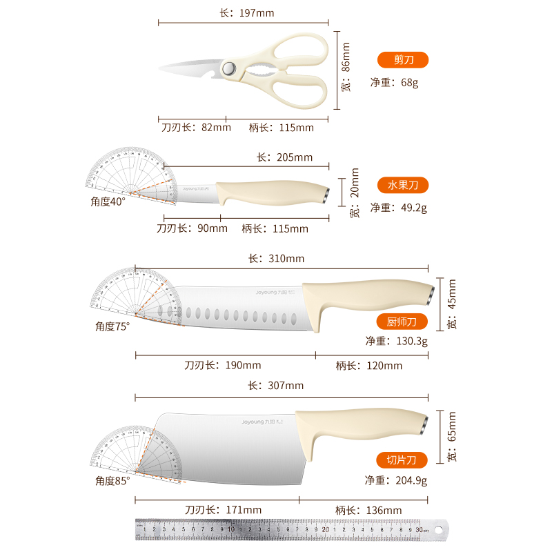 九阳刀具套装 砧板切菜刀组合三件套切片刀厨具菜板二合一 厨房套装
