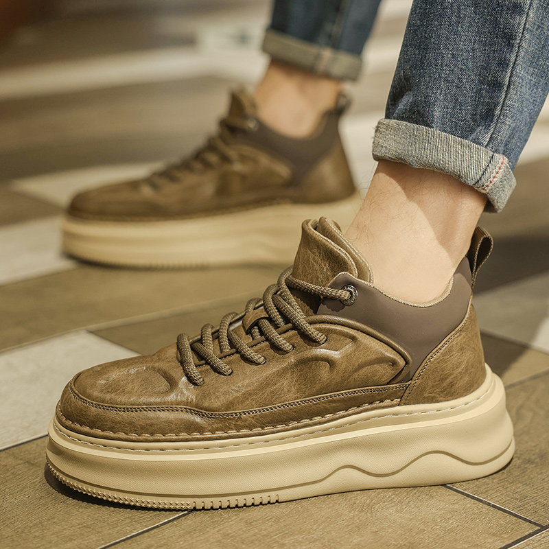 百搭休闲皮面防水青少年跑步运动篮球增高老爹鞋 森马高帮男鞋 秋季