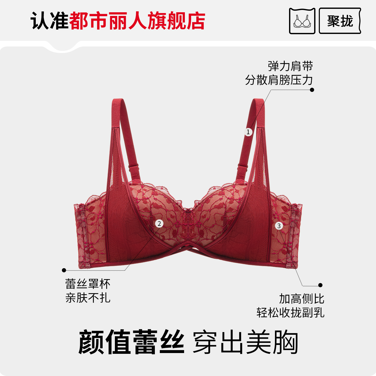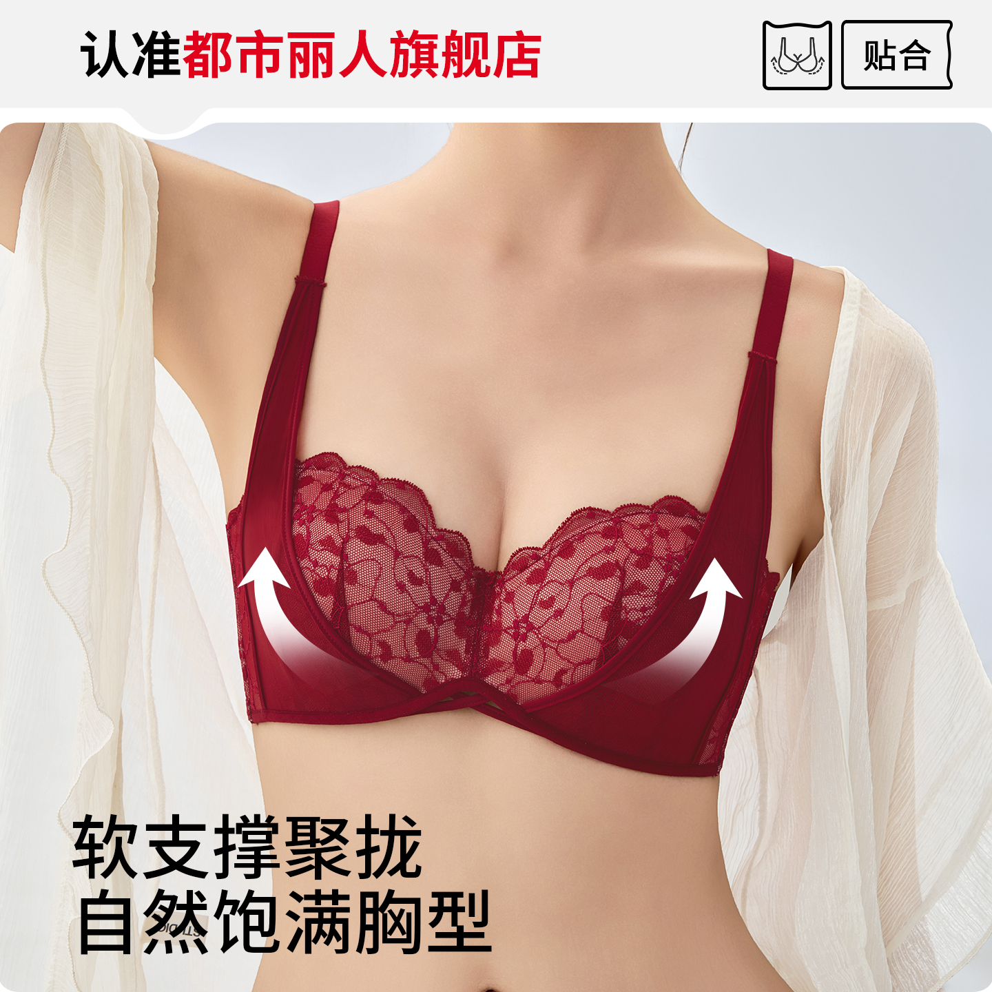 内衣缎面聚拢性感无钢圈文胸罩套装 虞书欣同款 ubras王妃蕾丝法式