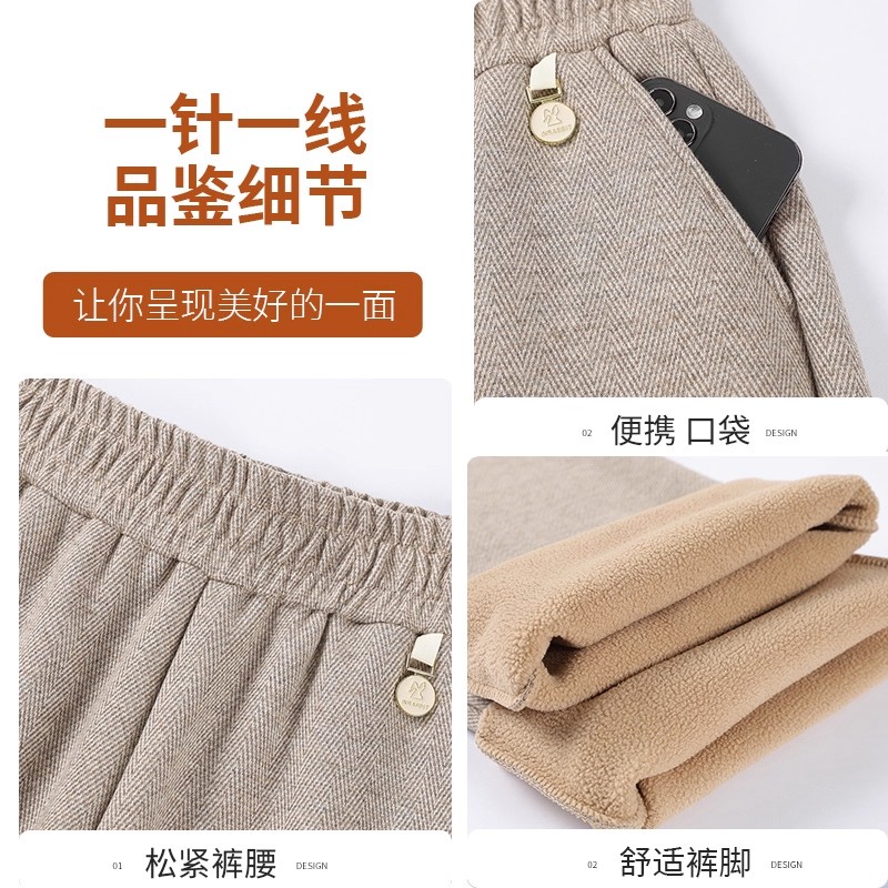 百搭阔太太高腰气质直筒裤 妈妈春秋新款 阔腿裤 子中老年女装 毛呢裤