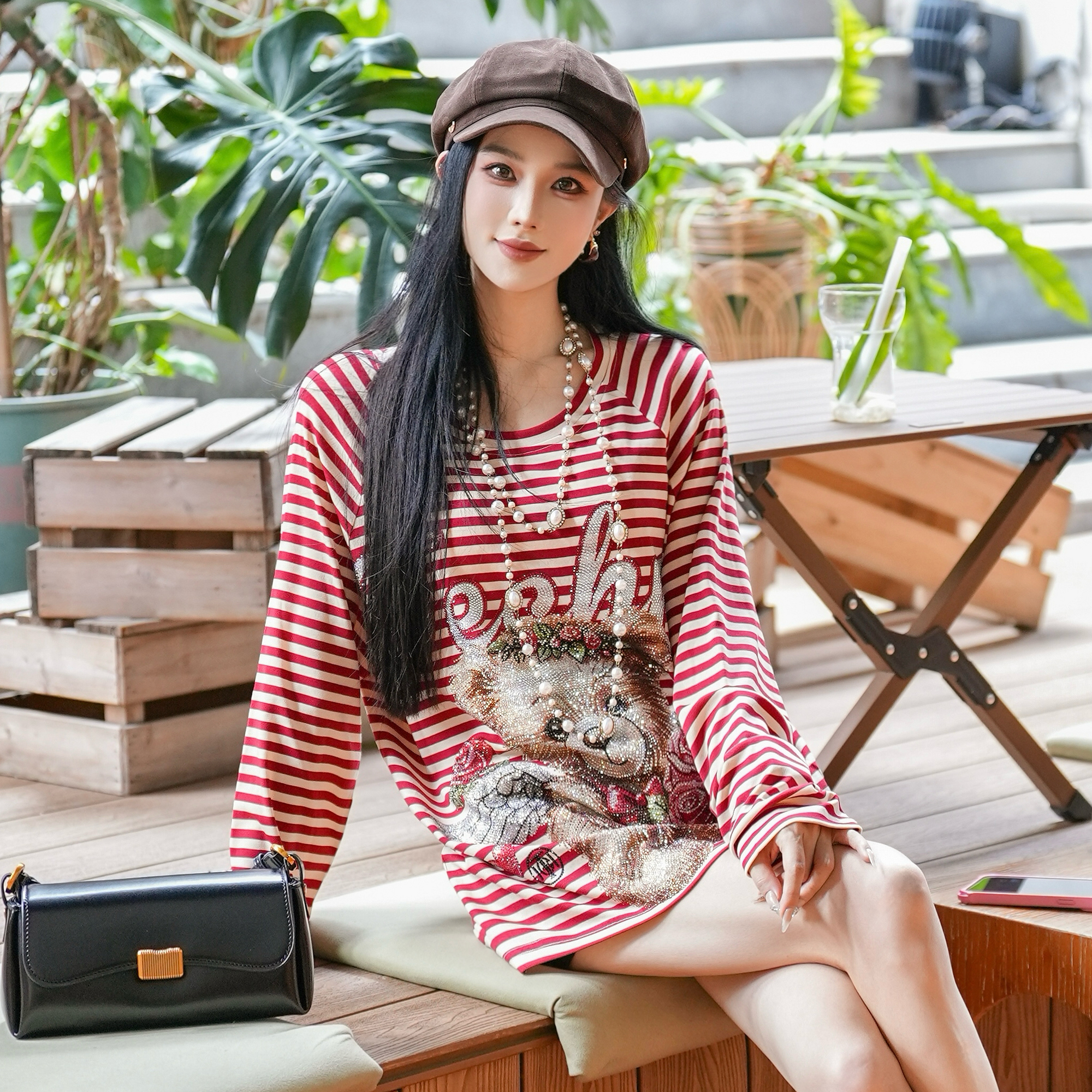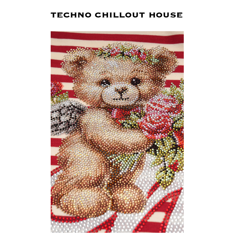 T75C08E9012 新款 TCH私服小熊烫休闲百搭潮牌条纹长袖 T恤女25秋季