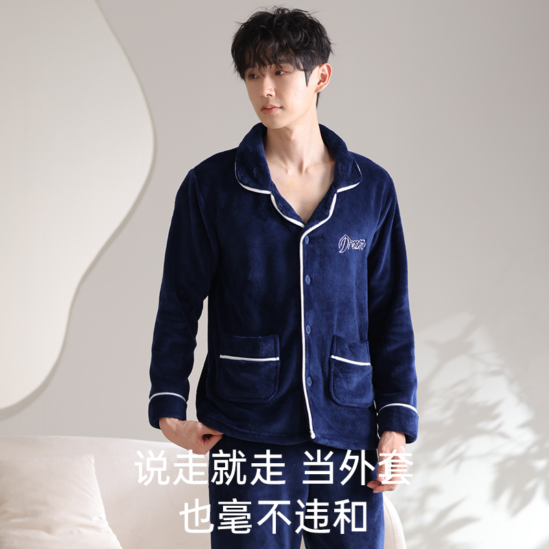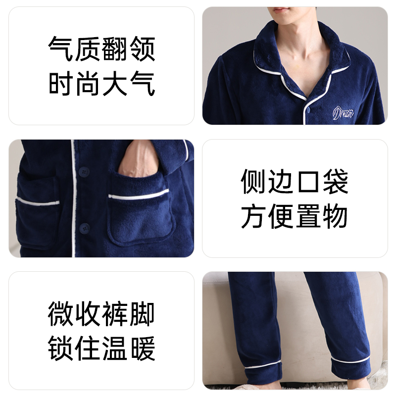 珊瑚绒睡衣加厚加绒长袖 新款 法兰绒大码 秋冬季 家居服套装 雅鹿男款