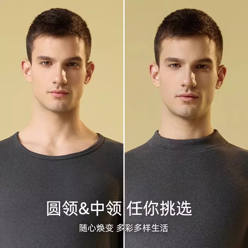 女圆领抗静电厚棉半高领秋冬 套装 三枪保暖内衣男士 纯棉秋衣秋裤