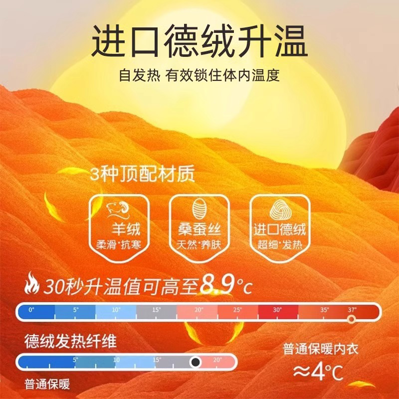 德绒羊绒发热防寒冬季 雅鹿保暖内衣男士 男款 套装 加绒加厚秋衣秋裤