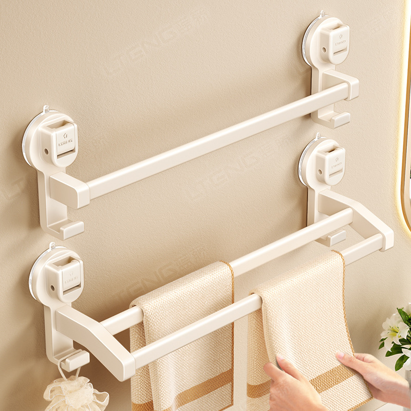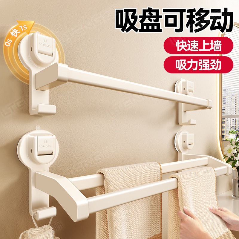 卫生间吸盘毛巾架子浴室免打孔墙上壁挂双杆毛巾杆收纳置物架上墙