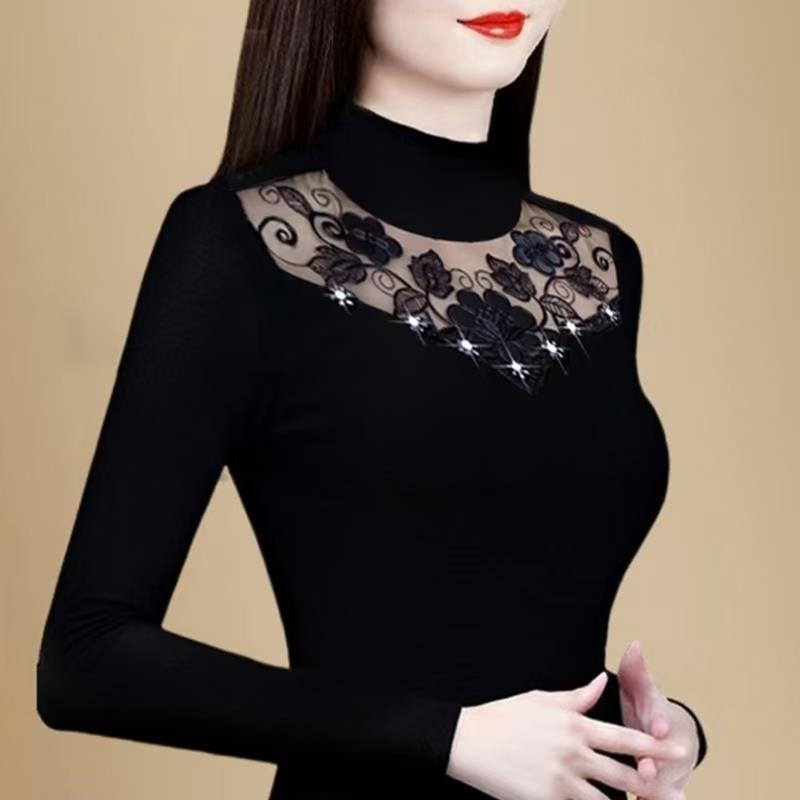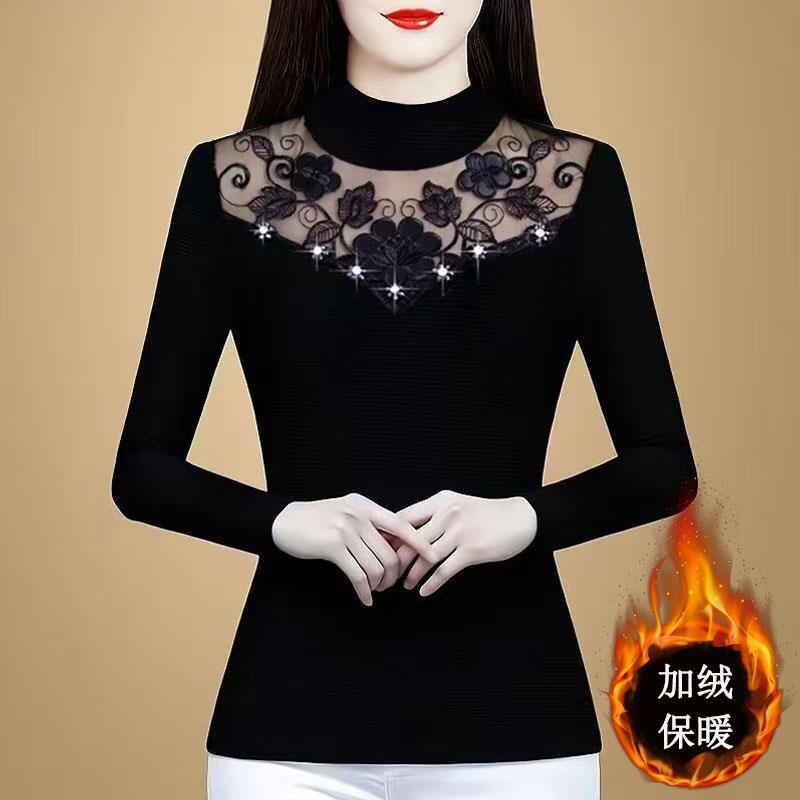 加绒保暖洋气半高领0921u 修身 打底衫 女内搭蕾丝女2025年秋冬新款