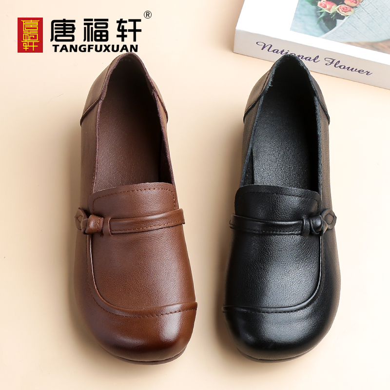 仙女风瓢鞋 秋季 浅口百搭中跟奶奶鞋 大码 真皮单鞋 女鞋 粗跟2025新款