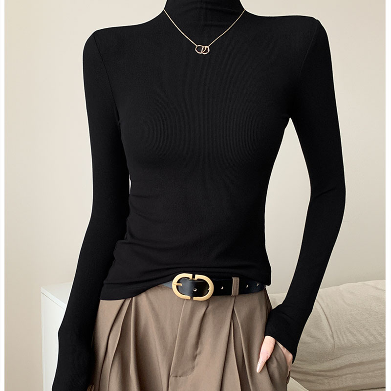 t恤女修身 长袖 百搭高级正肩上衣 女内搭秋冬新款 螺纹半高领打底衫