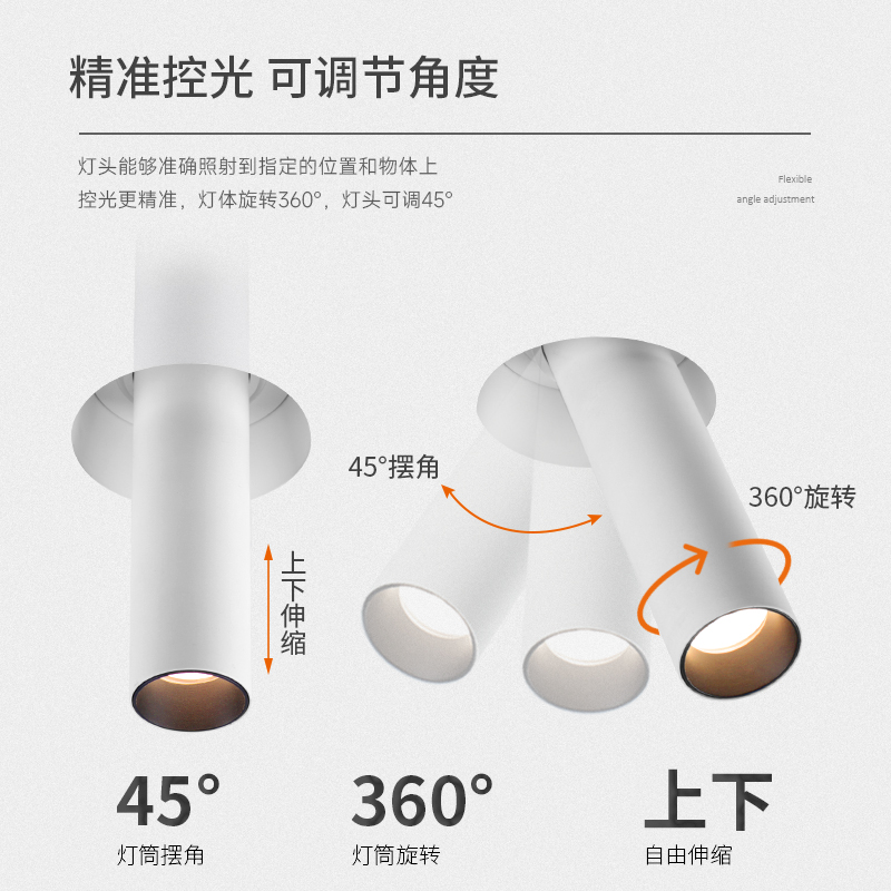 无边框可拉伸长筒射灯长杆凸出来旋转伸缩岛台极简24度聚光象鼻灯