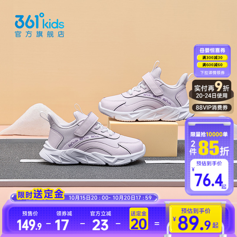 儿童运动鞋 361童鞋 中大童休闲鞋 小童秋冬革面加绒跑鞋 女童跑步鞋
