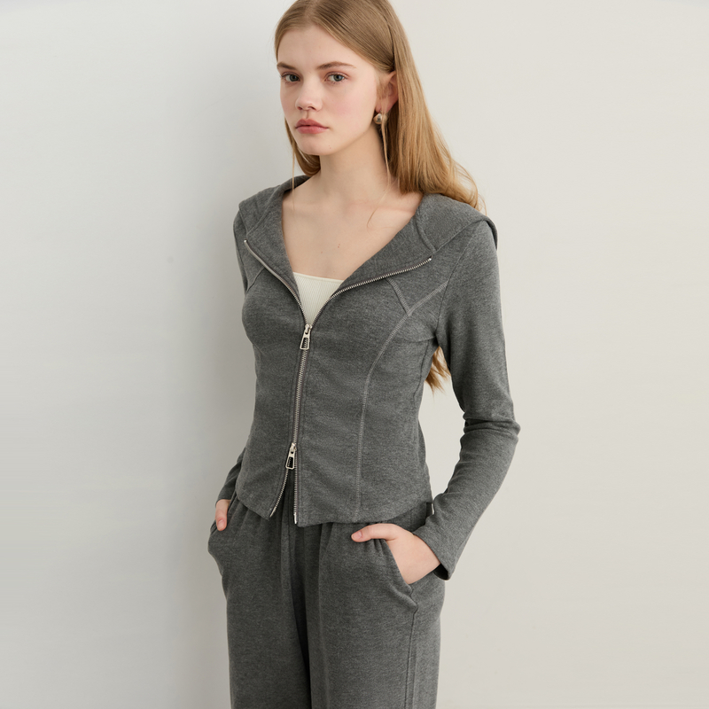女流行运动休闲连帽上衣长裤 灰色套装 两件套 新款 DPLAY2025年秋季