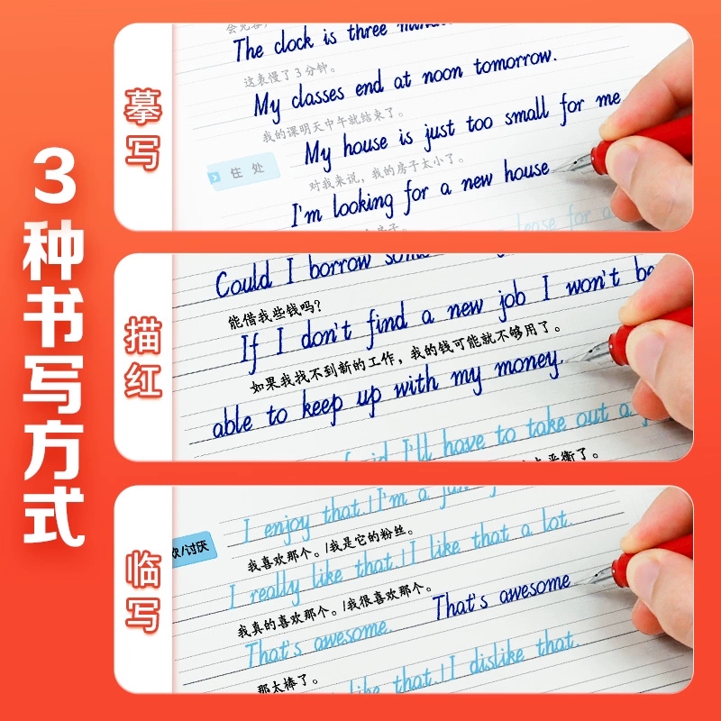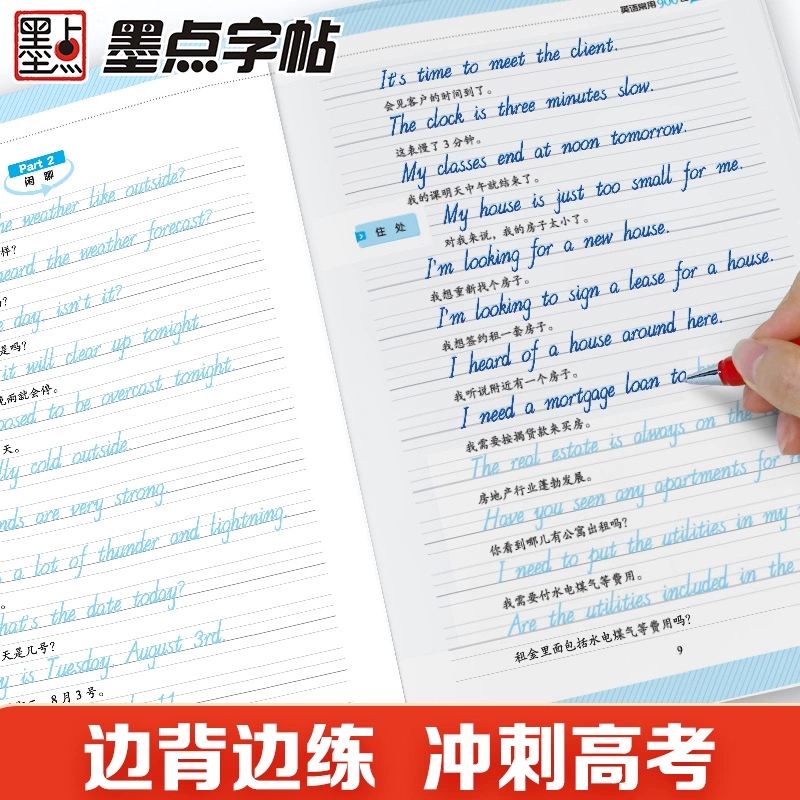 高中生斜体900句日常用语英语字帖求职面试英文字帖高考手写印刷体墨点字帖硬笔英文练字帖成人练字板墨点英语字帖