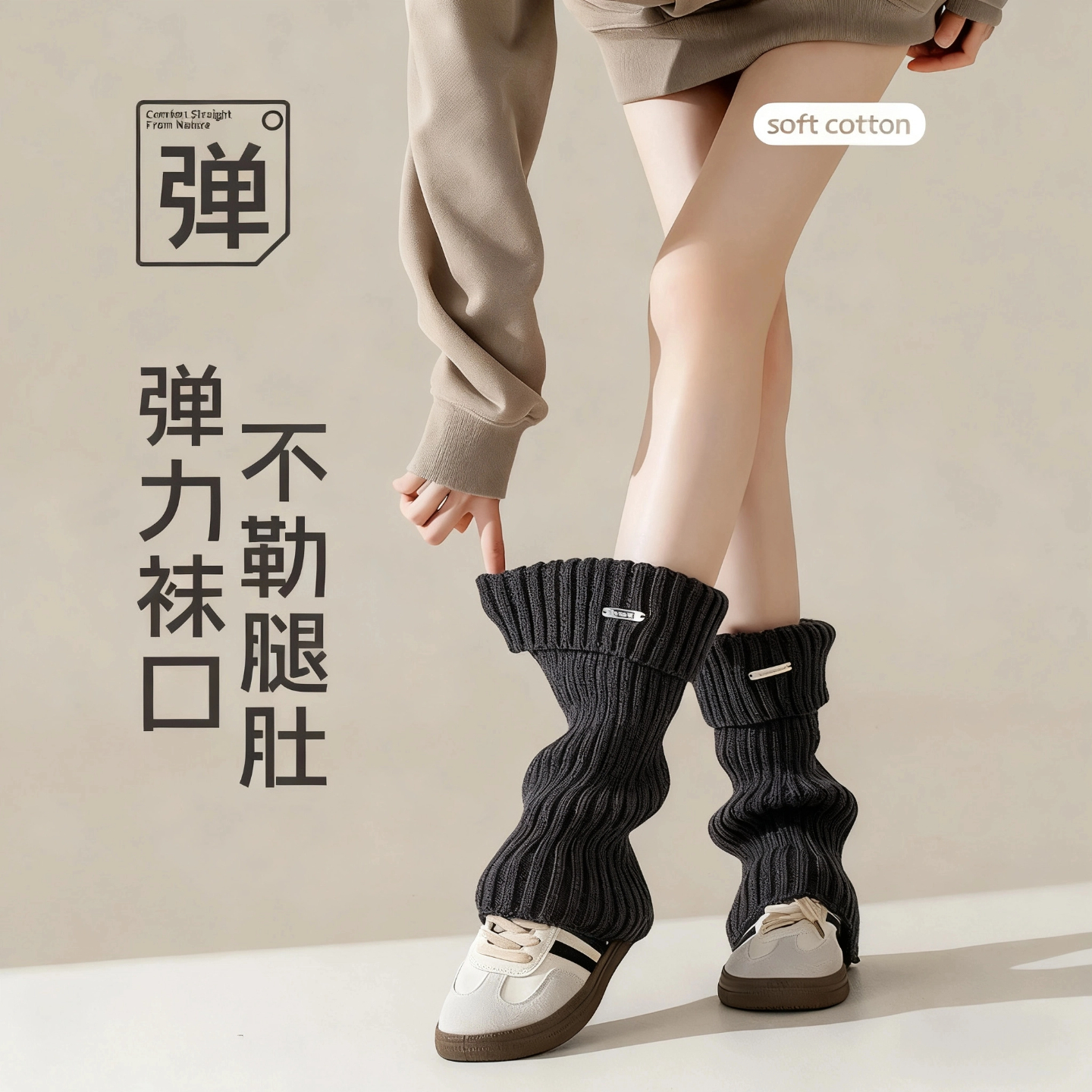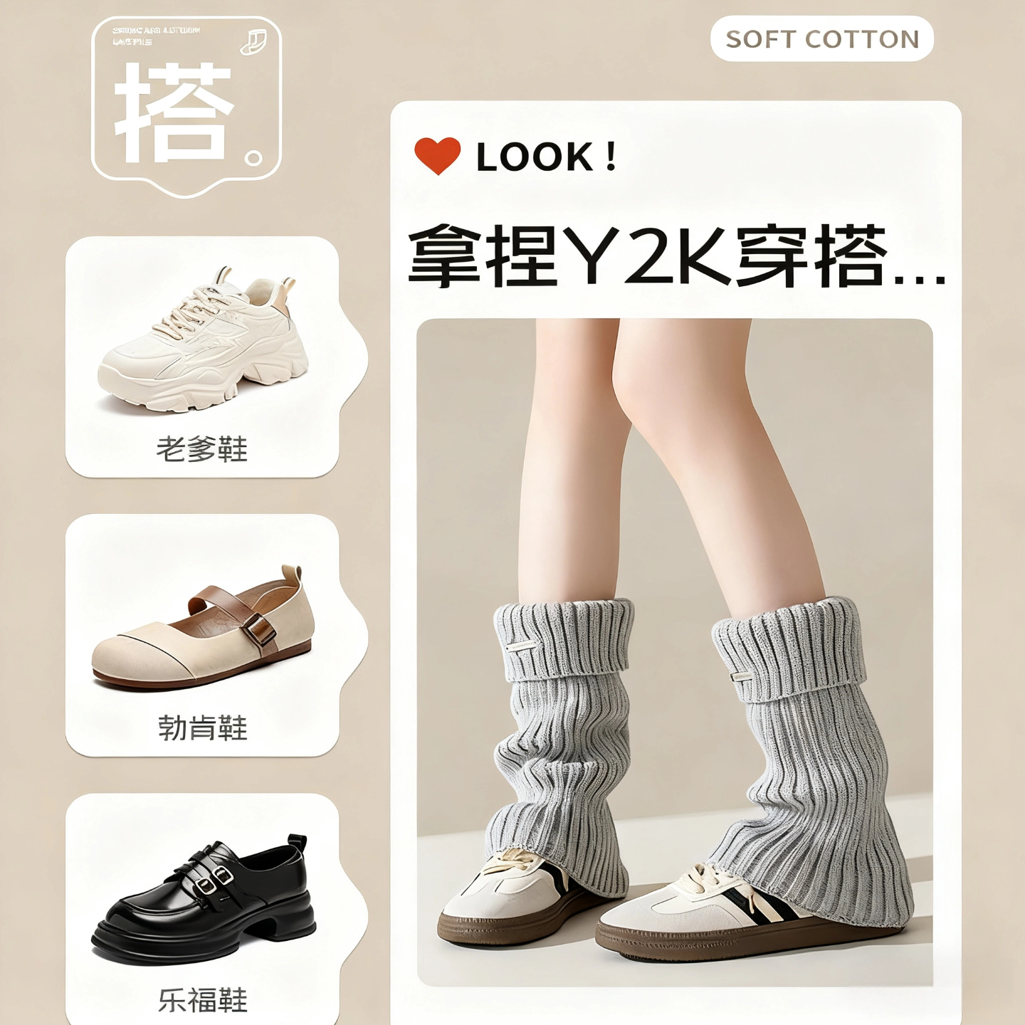 针织袜套白色袜子女春秋显瘦小腿袜y2k腿套配勃肯鞋 中长筒堆堆袜
