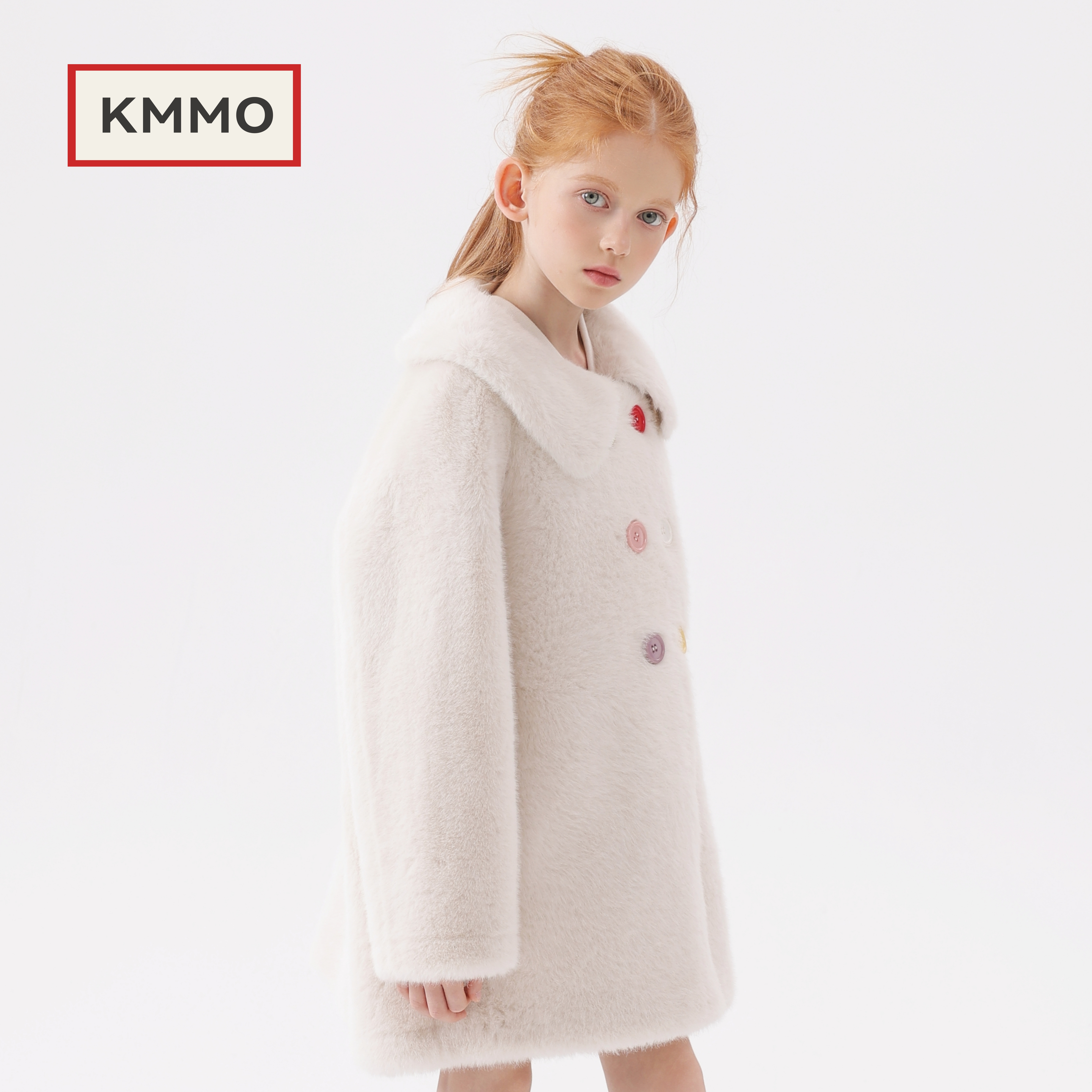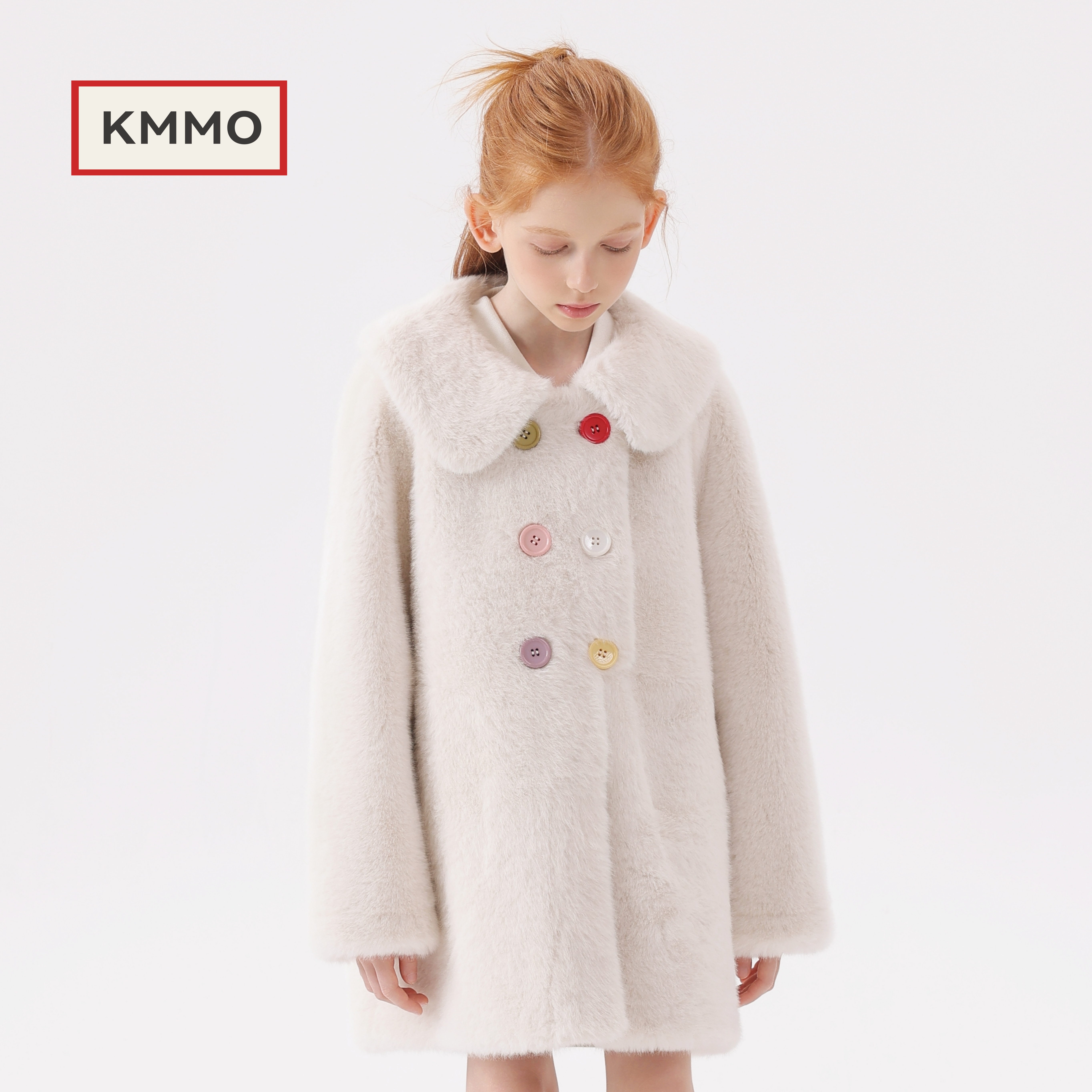 小女孩加绒中长款 KMMO儿童皮草外套2025秋冬新款 女童仿水貂毛冬装