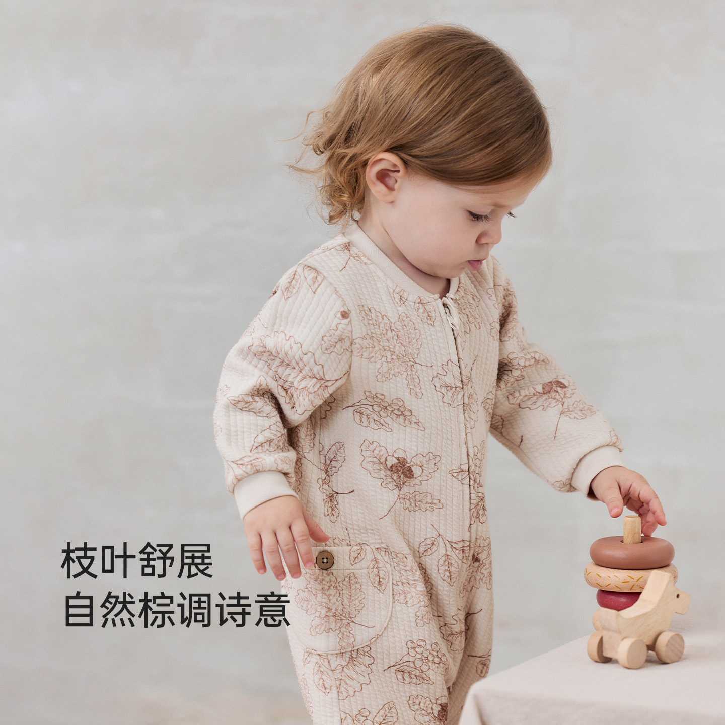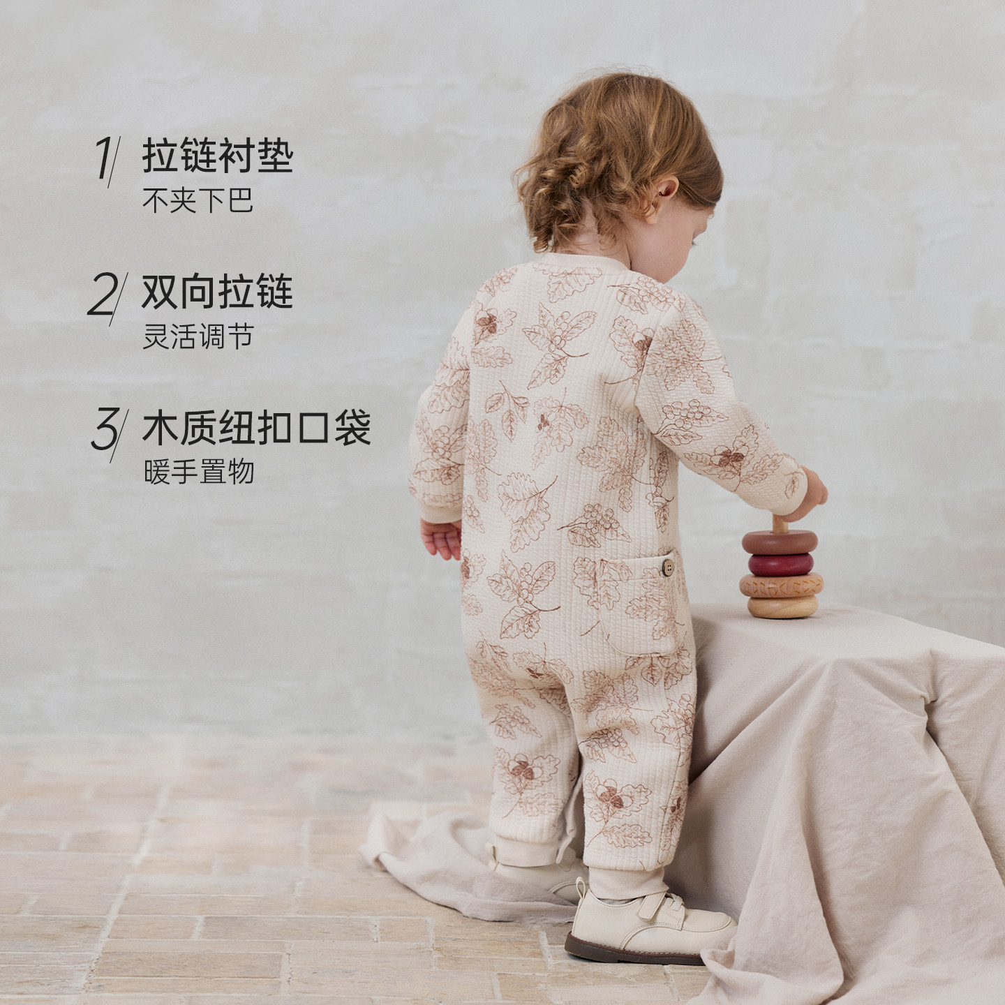 babylove婴儿连体衣秋冬薄夹棉哈衣爬服宝宝纯棉保暖洋气外出服