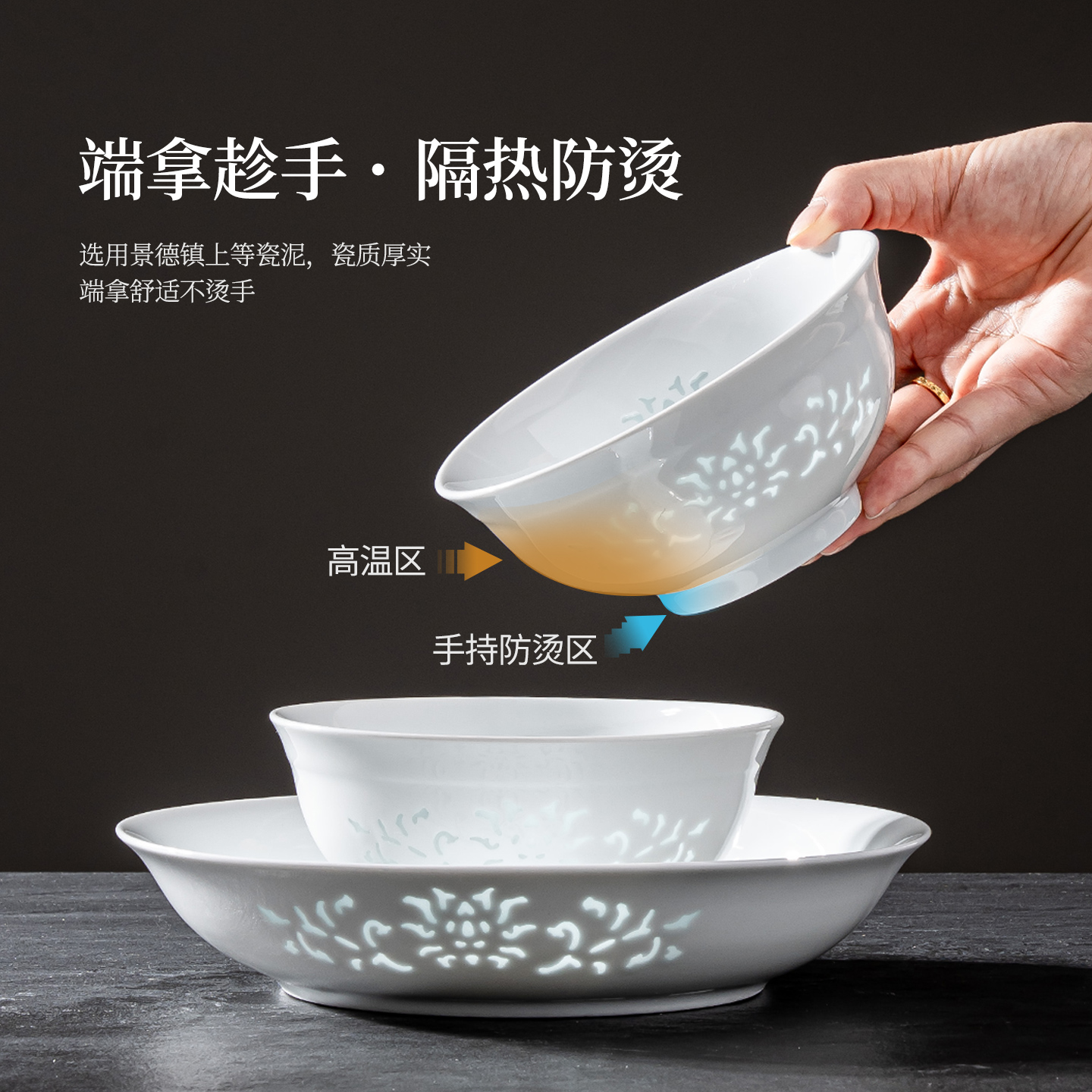 景德镇防烫高脚碗陶瓷餐具碗家用2025新款 高颜值饭碗吃饭碗 盘套装