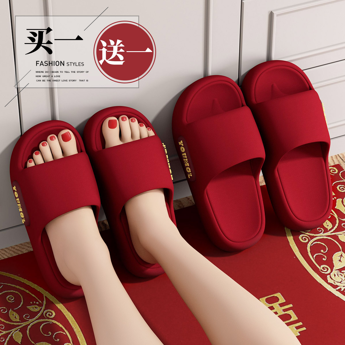 婚鞋 新婚礼新娘陪嫁喜事厚底情侣凉拖鞋 喜庆红色一对夏季 结婚拖鞋
