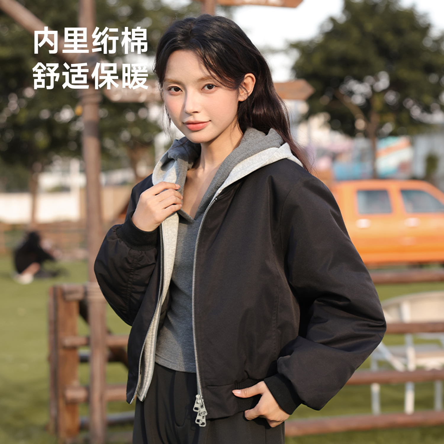 宽松休闲通勤百搭开衫 韩版 上衣Q 新款 班尼路S&k系列连帽外套女秋季