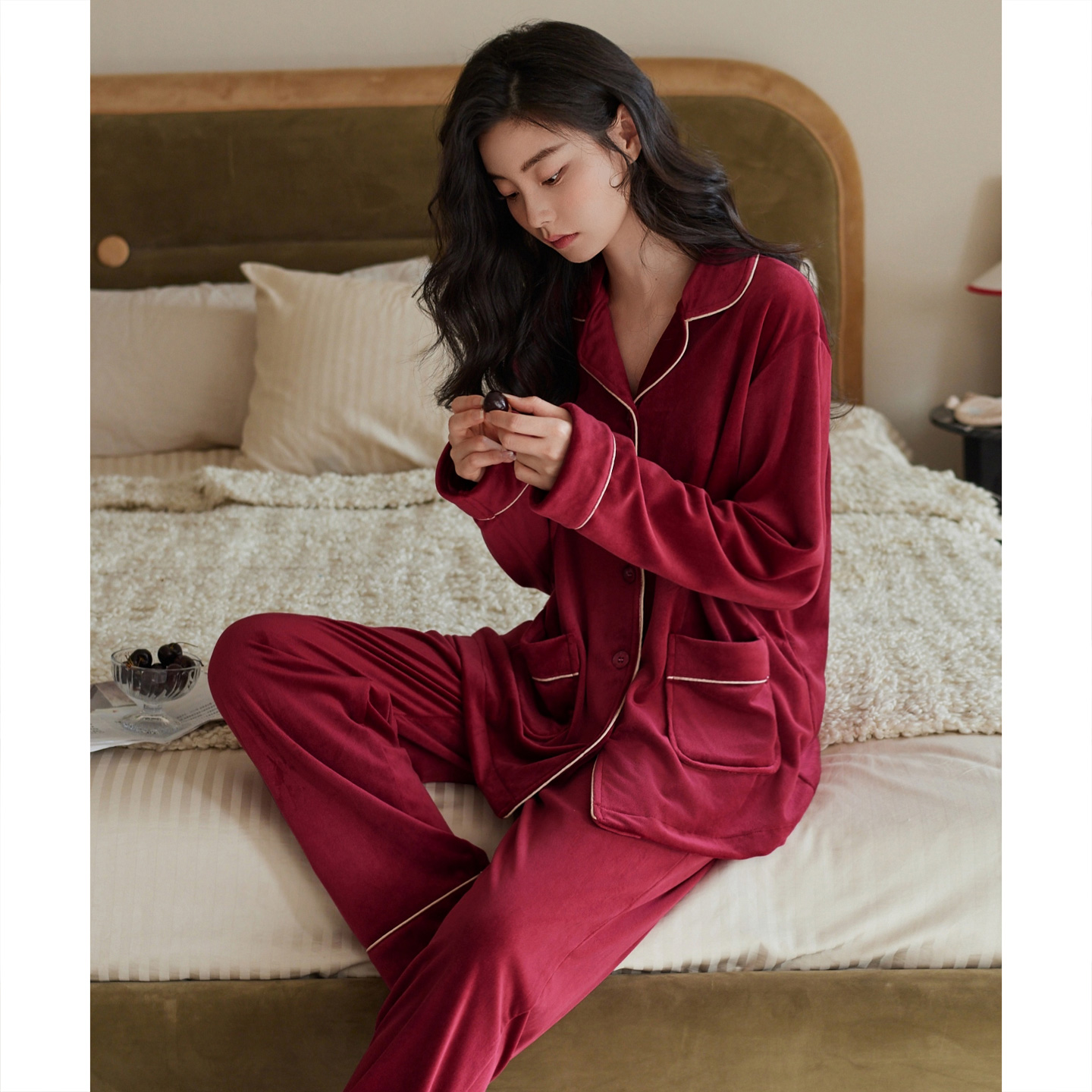 睡衣女冬季 海岛绒家居服 珊瑚绒加厚加绒红色本命年新婚结婚秋冬款
