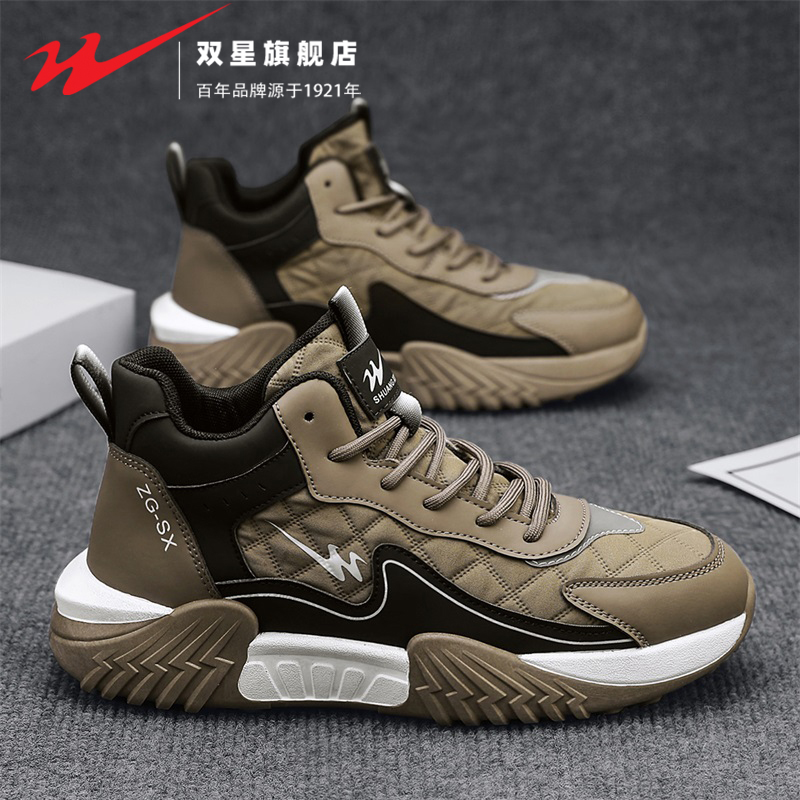 运动鞋 高帮休闲鞋 秋冬新款 子学生厚底男鞋 皮面鞋 征服鸿星尔克板鞋