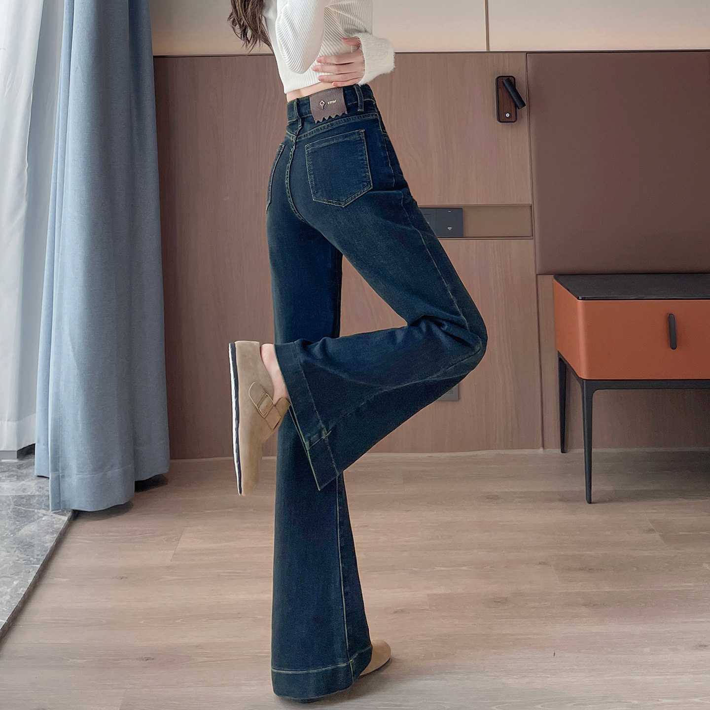 时尚 复古灰色裤 子美式 三福牛仔长裤 女装 秋季 喇叭裤 504798 2025新款