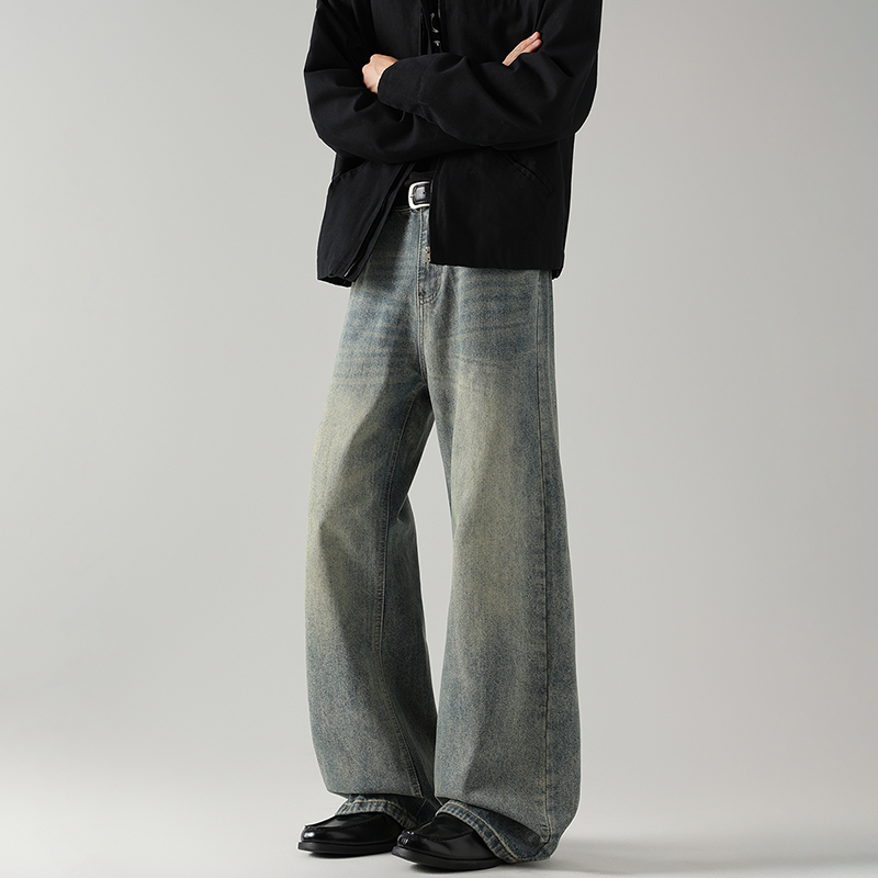 男士 牛仔裤 秋季 新款 子 V37美式 宽松阔腿oversize显瘦百搭裤 工装