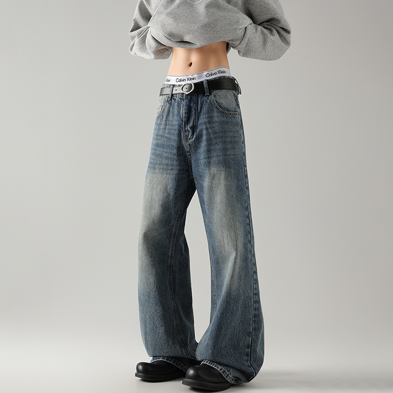 牛仔裤 裤 女2025秋冬新款 小个子窄版 子 爆款 浅色高腰阔腿宽松直筒裤