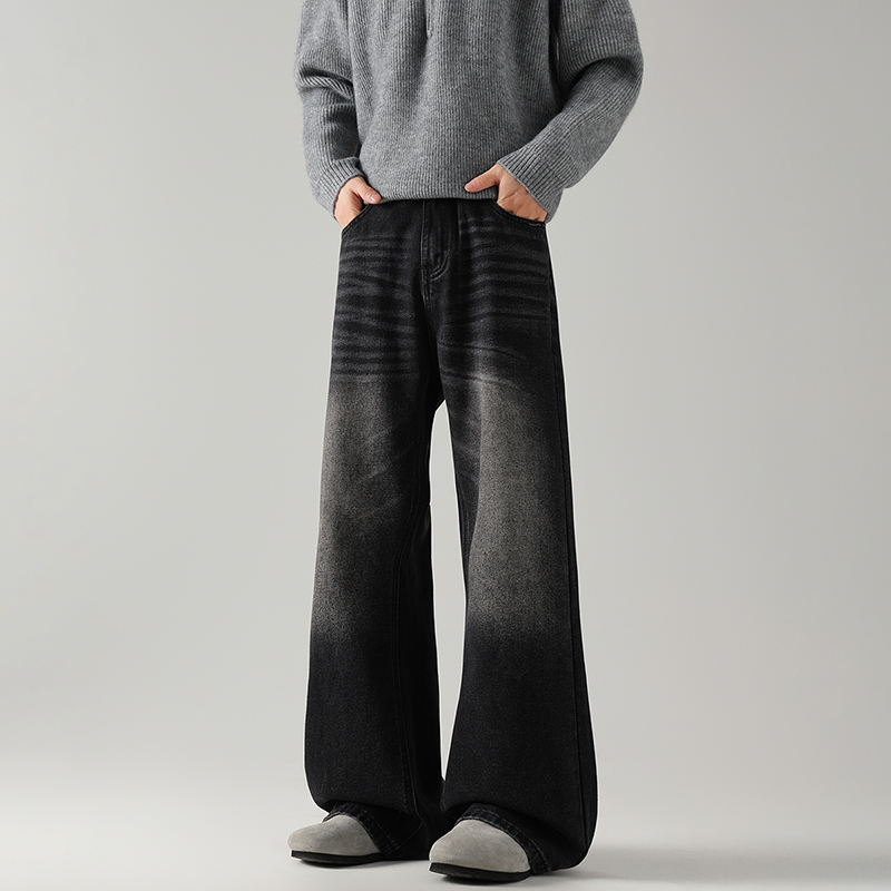 设计感铆钉水洗宽松直筒裤 V37美式 秋季 男款 子 解构立体褶皱牛仔裤