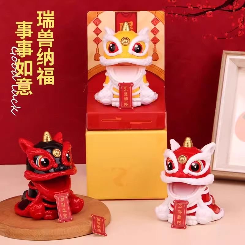 太阳能醒狮汽车摇头摆件2025新款 饰用品 国潮舞狮前台车载中控台装