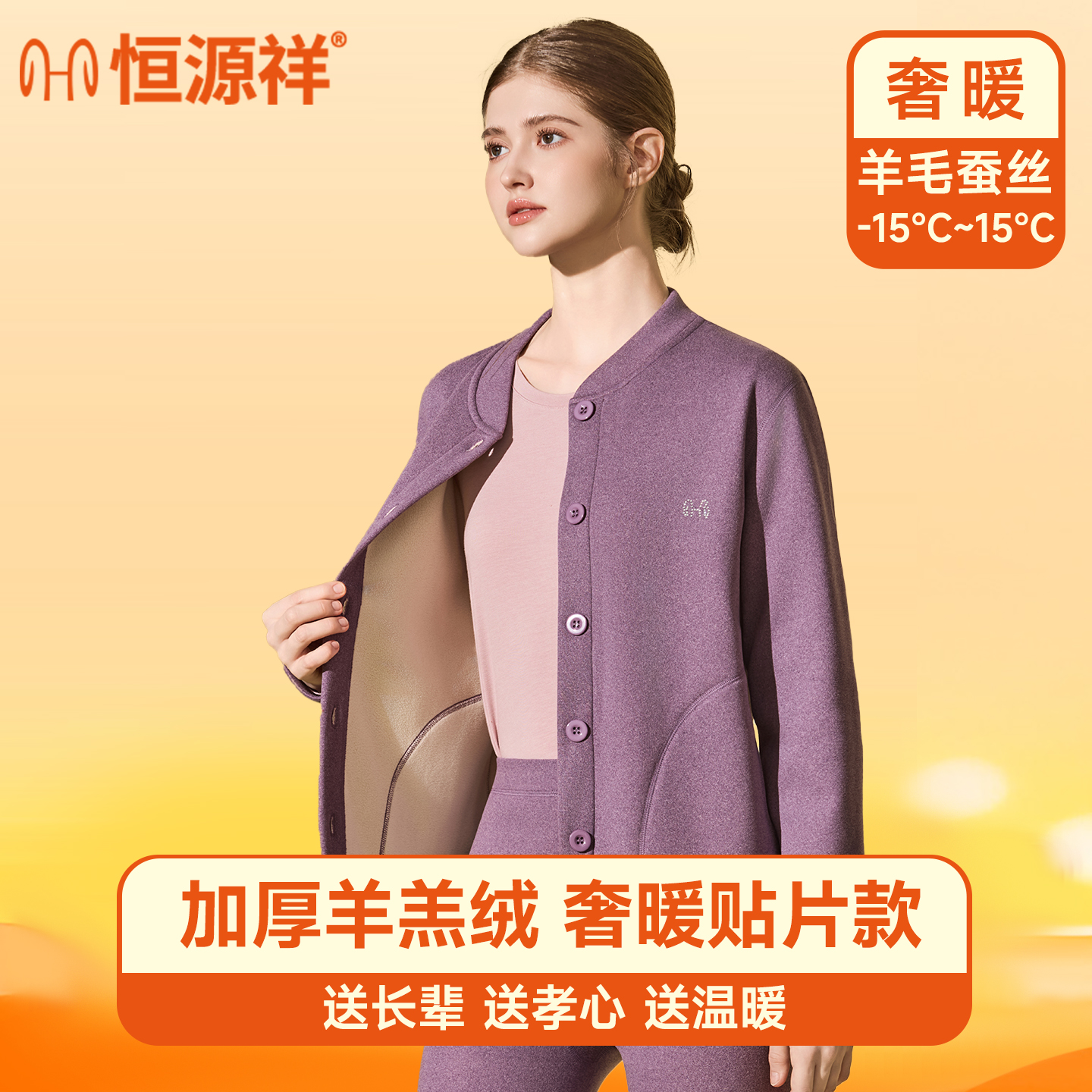 保暖套装 俞兆林7A抗菌羊绒蚕丝贴片男女同款 香菇双十一