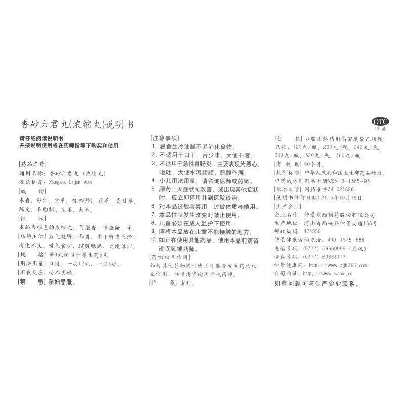 300丸 1瓶 盒 仲景 和胃 浓缩丸 益气健脾 消化不良 香砂六君丸