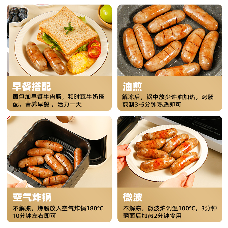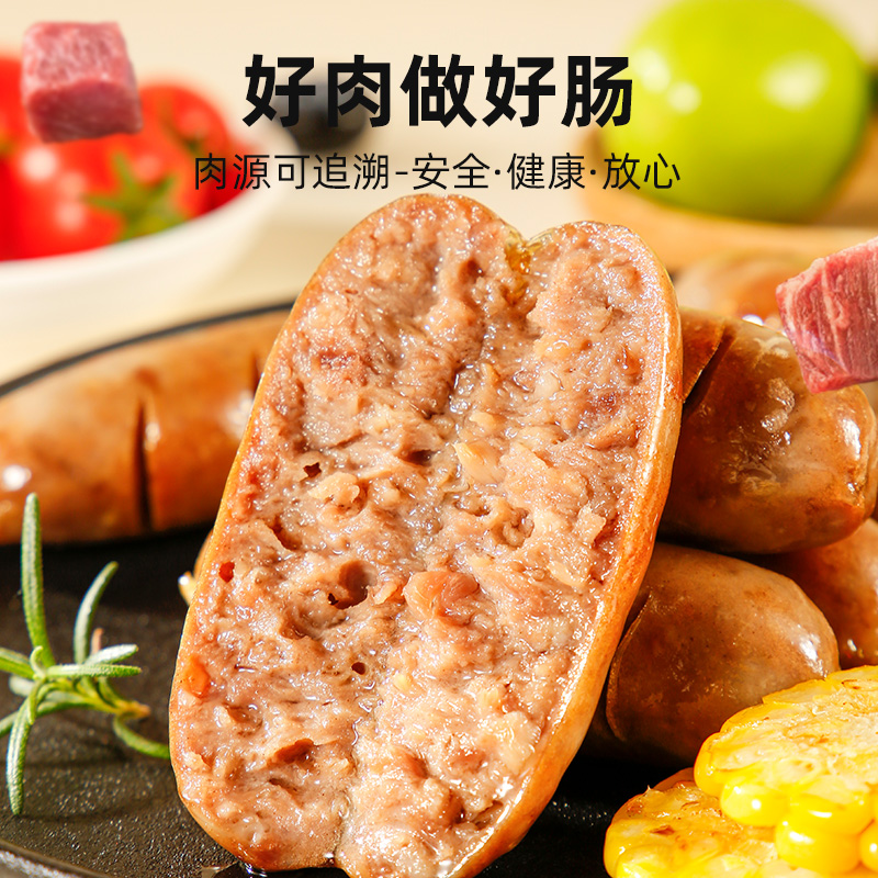 汇腾牛肉烤肠纯肉肠无儿童早餐香肠添加黑椒火山石台式 热狗肠防0