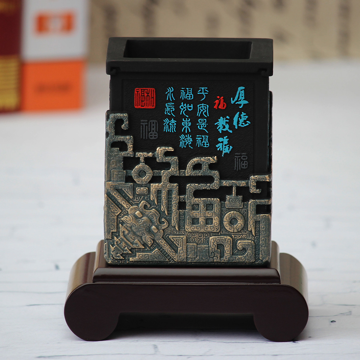 笔筒摆件办公室桌面炭雕书房送老师实用送客户国风商务礼品纪念品