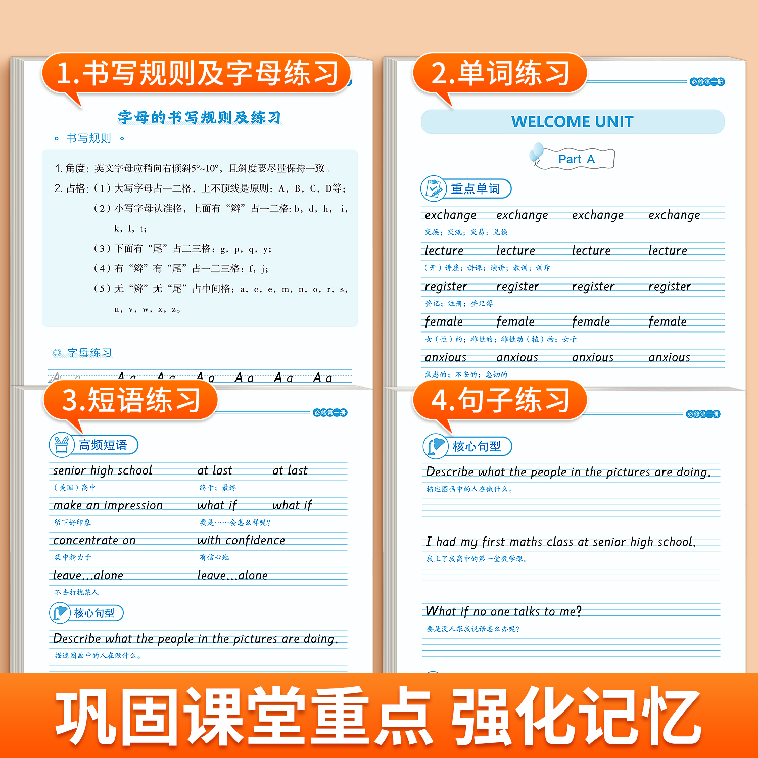 高中英语衡水体字帖高一高中生专用同步练字帖必修一二三人教版 描红本 上下册语文英语本每日一练26个英文字母单词高考写字贴适合