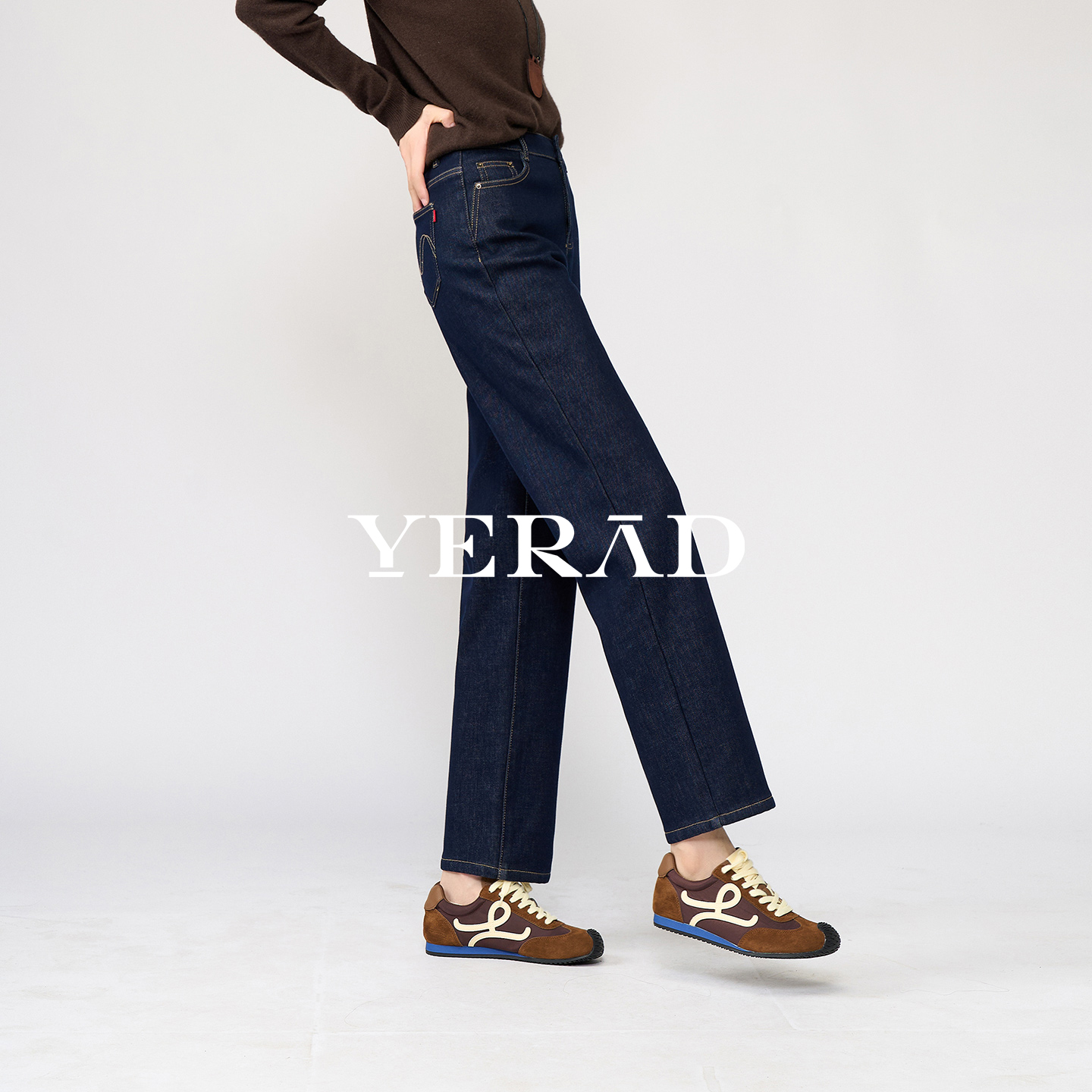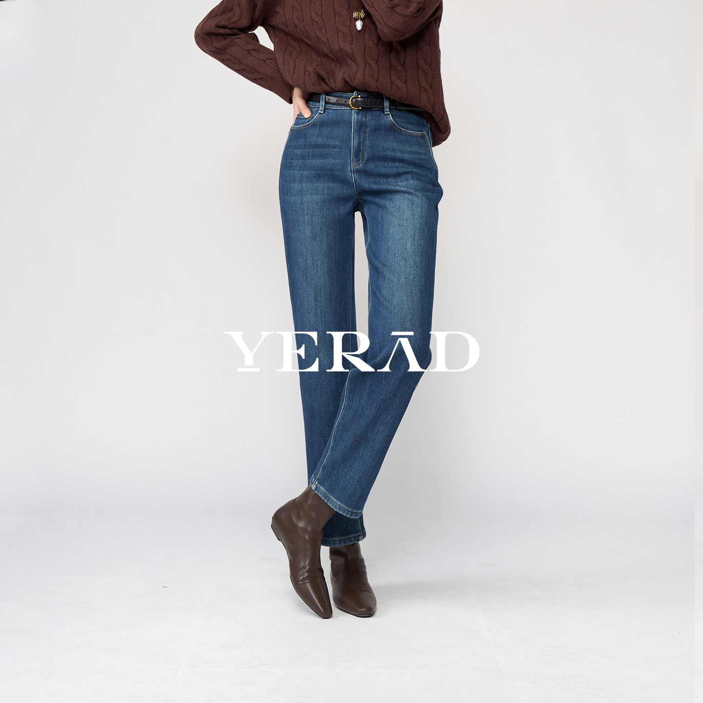 黑色烟管裤 娅丽达加厚奥粒绒直筒牛仔裤 锁色大码 新款 潮 女2025冬季