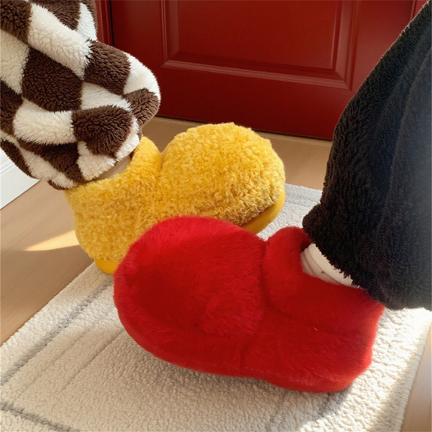 男款 室内家居用厚底加绒加厚毛毛保暖棉鞋 防滑 包跟女士冬季 棉拖鞋