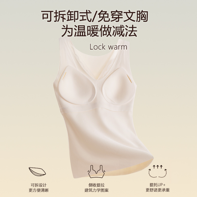 蝶安芬无痕保暖背心女打底春夏加绒加厚内搭带胸垫一体式 发热内衣