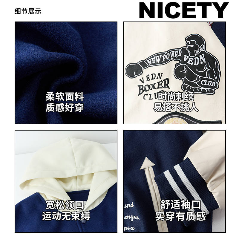 男童秋季 学生儿童春秋运动拼接皮夹克 韩范毛呢棒球服外套2025新款