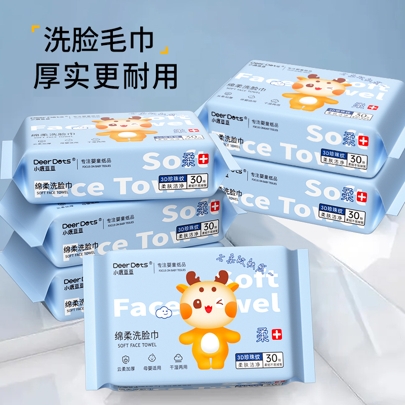 小鹿豆豆洗脸巾一次性加厚棉柔巾洁面巾婴儿擦脸巾悬挂擦脸绵柔巾
