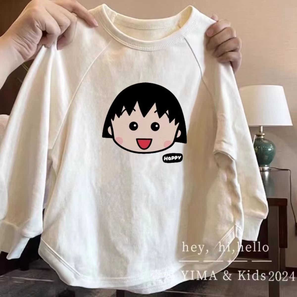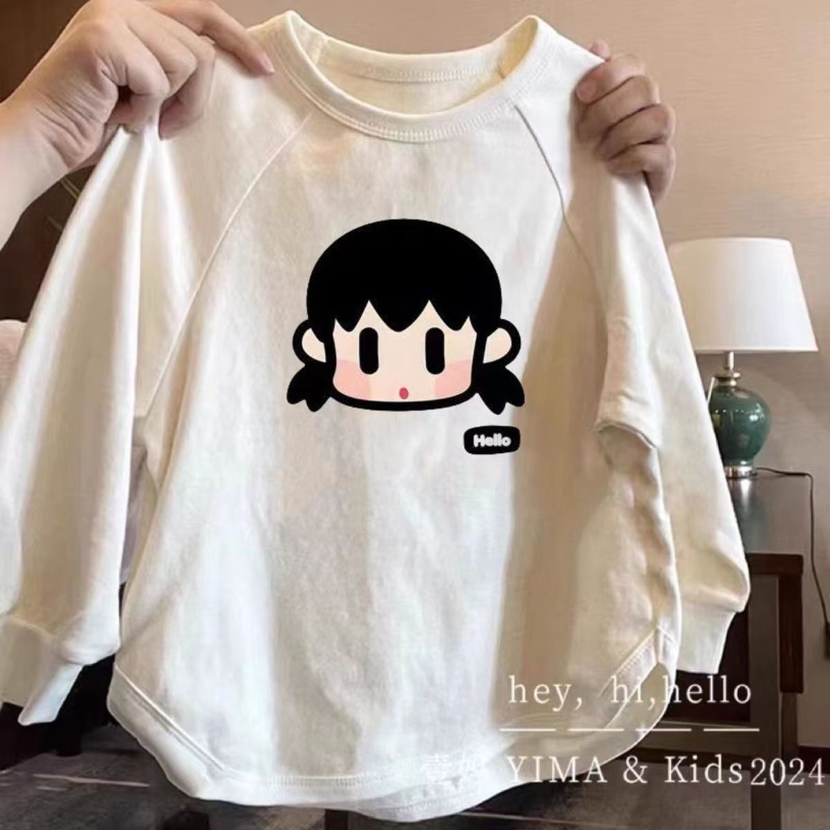 宽松上衣服休闲E 洋气插肩儿童长袖 100%纯棉童装 女童T恤2025春秋款