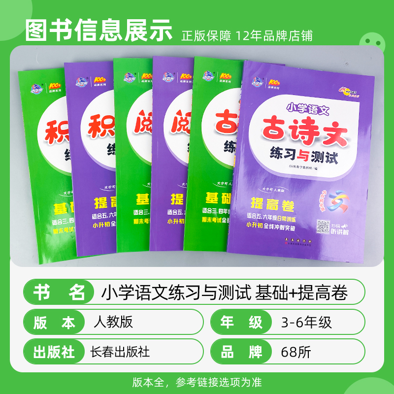 2026小学语文古诗文积累与运用阅读能力练习与测试基础卷提高卷三四五六年级小升初关联人教版 68所名校 教材期末考试必备名师讲解
