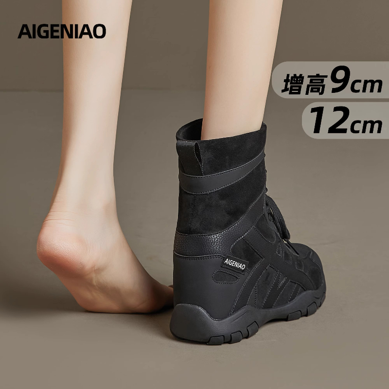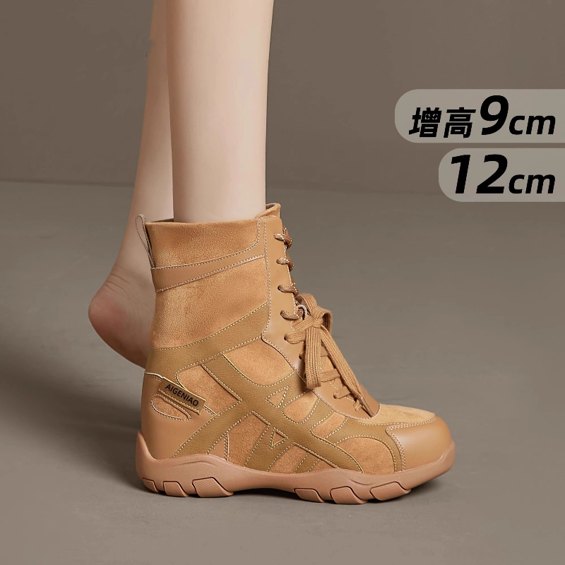 厚底内增高12公分小个子德训鞋 新款 女超火2025秋季 复古高帮阿甘鞋